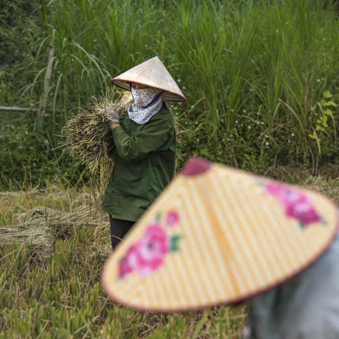 Constant process of sowing, planting, harvesting and repeating. The work is very physical, hard and tiring and most of it falls on women's shoulders. Although men also play a role mainly in plowing, with the help of the buffalo, before sowing and after harvesting, and sometimes the whole family enlists for harvesting, a scene of a bending woman carrying a baby on her back in a water-flooded rice field is a very common sight.